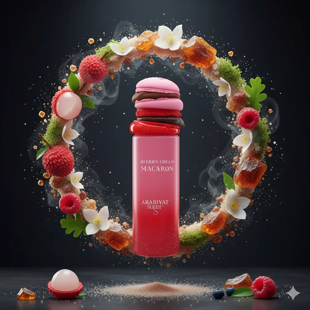 Indulge in the vibrant and airy sweetness of Arabiyat Sugar Berry Cream Macaron. This fragrance is a sophisticated spin on a fruity gourmand, blending juicy berries with a modern, molecular base for a scent that is both sweet and exceptionally long-lasting.