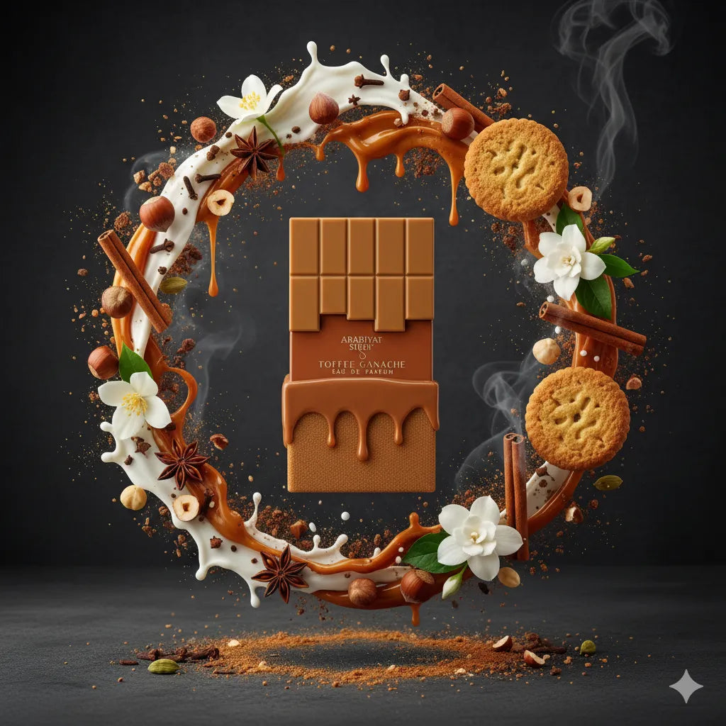 Immerse yourself in the decadent world of Arabiyat Sugar Toffee Ganache, a fragrance that captures the rich, buttery aroma of a gourmet dessert. This scent is a celebration of spicy warmth and creamy sweetness, perfect for those who crave a comforting, edible profile.