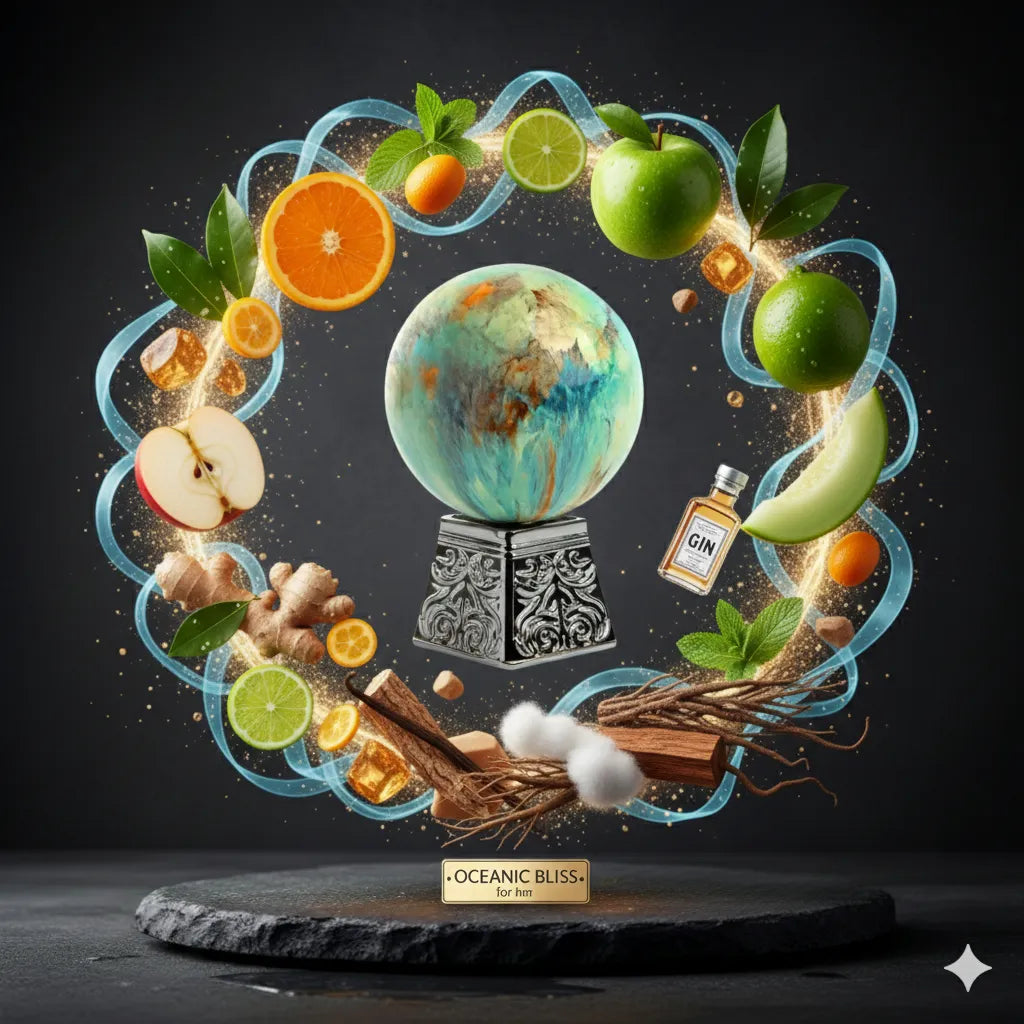 Breathe in the crisp, exhilarating air of Atmosphere, a fragrance that captures the feeling of an icy breeze on a hot day. The scent opens with a sharp, energetic burst of zest, blending unique kumquat and ginger with crisp apple. The heart reveals a cooling, aromatic core of fresh mint and watery notes, accented by a sophisticated "gin and tonic" accord. A clean, earthy base of Haitian vetiver, cedar, and musk grounds the fragrance, leaving a trail that is revitalizing, masculine, and effortlessly cool.